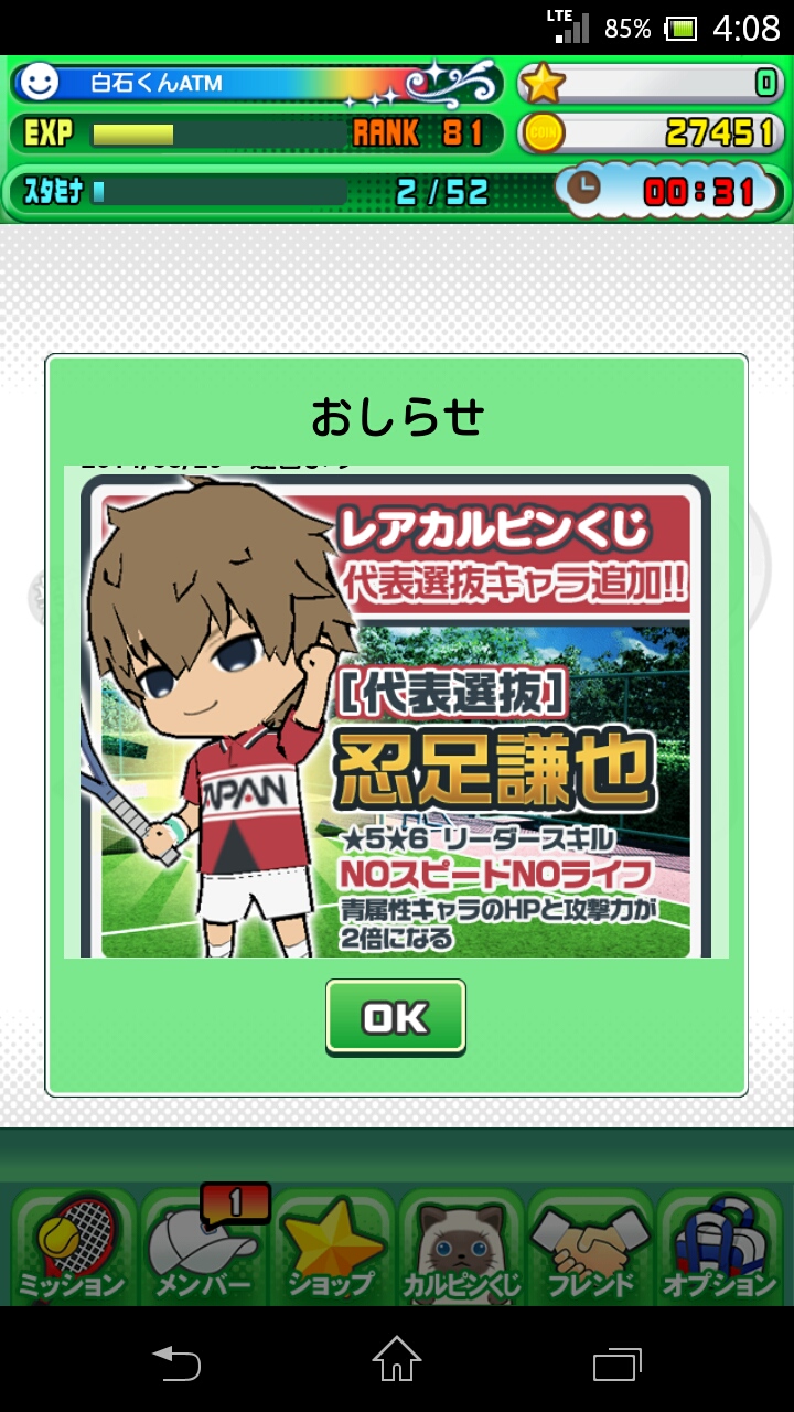 でも黄色は最初からいる千石が強いから使い道ないヽ(^○^)ノ財前とヒロシと柳はまだか8月になったら全員でるのかと思っていて落胆した